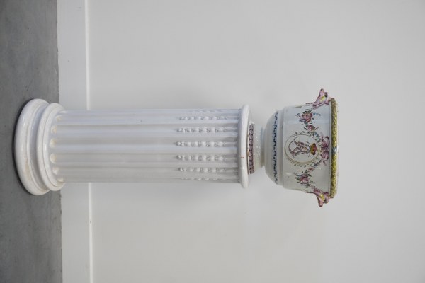 Colonne en porcelaine avec cache-pot en faïence. Accidents et restaurations...