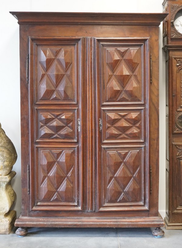 Armoire en chêne ouvrant à 2 portes pointe de diamant...