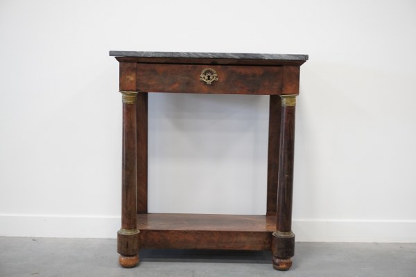 Console Empire dessus de marbre ouvrant à 1 tiroir. Manque..