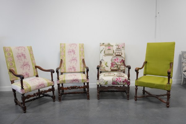 Suite de 4 fauteuils en chêne avec garniture en tissu..