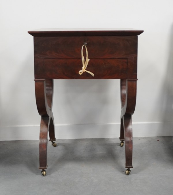Table de toilette en acajou ouvrant à 1 abattant et..