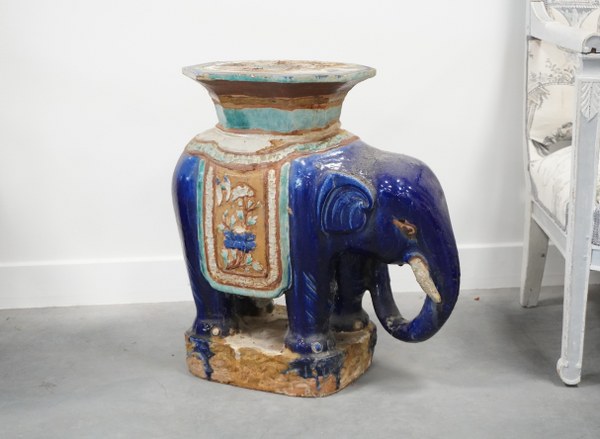 Sellette en forme d'éléphant en céramique émaillée. Accidents. Hauteur :..