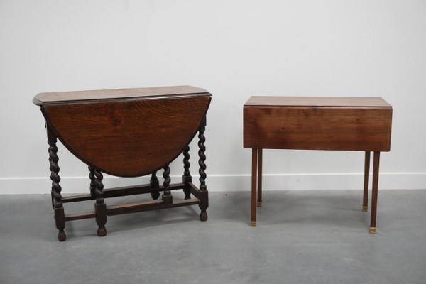 Lot de 2 guéridons, table néo rustique à 2 allonges..