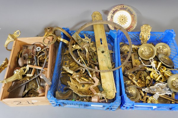 Lot de bronzes pour meubles, poignets, cerclages, serrures et divers....