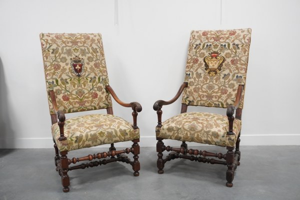 Paire de fauteuils en chêne mouluré, sculpté et tourné. Époque..