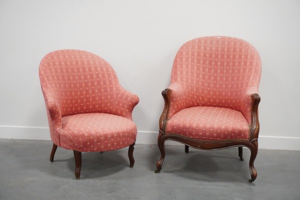 2 fauteuils avec le même tissu rose floral. Dans l'état.