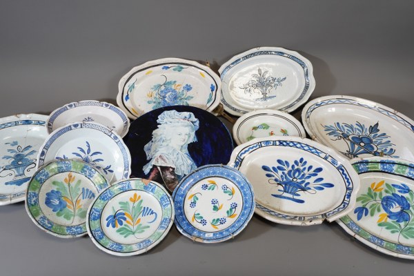 Lot de plats et assiettes décoratifs (dont des culs noirs)...