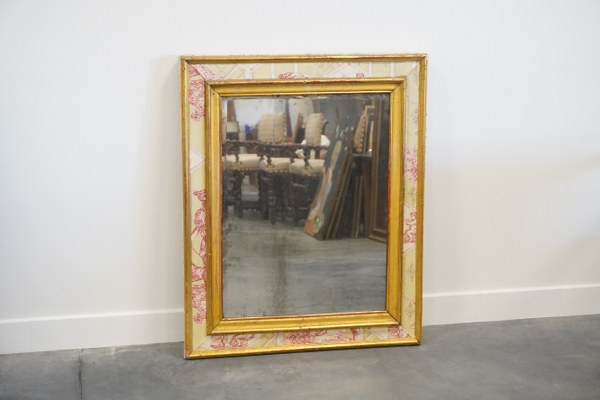 Miroir en bois doré avec entourage tissus. 94x77cm.