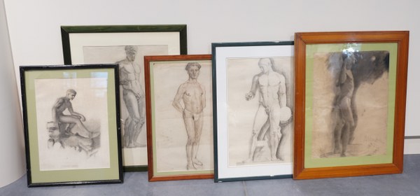 Lot de 5 dessins d'hommes encadrés sous verre. 87x67cm pour..