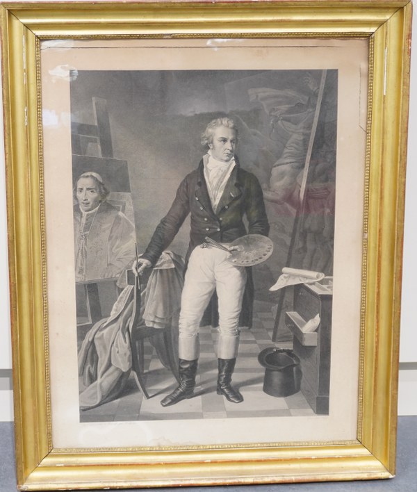 Gravure Napoléonienne dans un encadrement doré sous verre. 92x72cm. Déchirures.