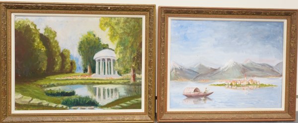 Pendant d'huiles sur isorel représentant une vue de jardin et..