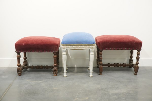 Lot de 3 reposes pieds dont 2 en chêne sculpté..