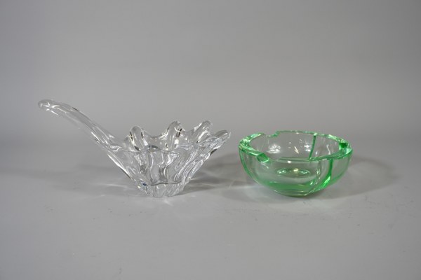 Daum, vide poche en cristal et cendrier en cristal vert.