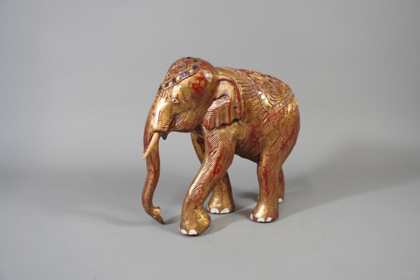 Éléphant en bois doré sculpté. Hauteur: 22cm.