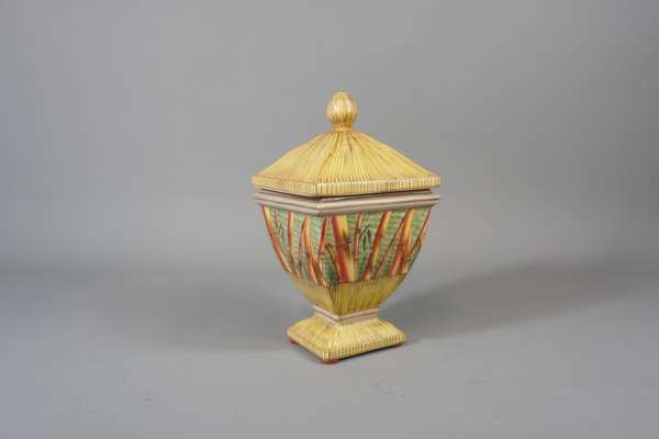 Pot couvert en porcelaine imitation bambou. Marque Sophie Langet. Hauteur:..