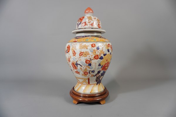 Pot couvert en porcelaine à décor floral. Reproduction. Hauteur: 31cm.
