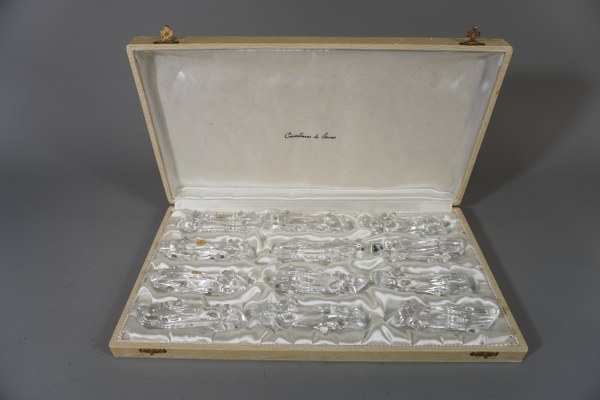 12 portes couteau en cristal de Sèvres dans leur écrin.