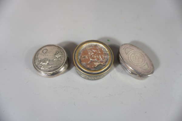 Pilulier en argent à décor gravé. Poids : environ 50..