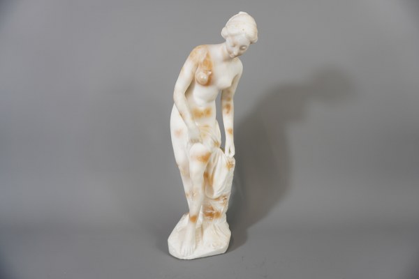 D'après Falconnet. Nymphe au bain. Albâtre. Signé. Petits accidents. Hauteur..