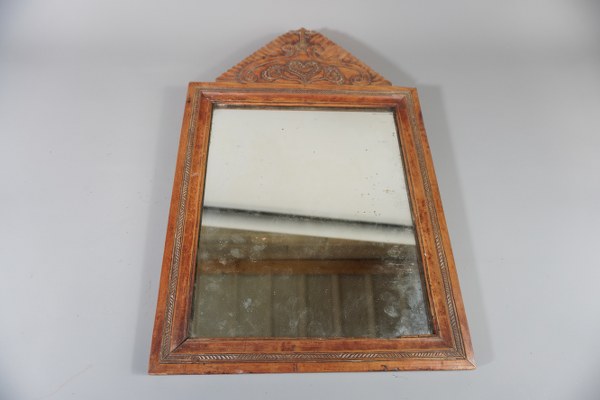 Miroir en bois naturel à fronton. Au dos planche marquée..