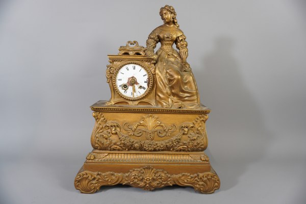 Pendule en bronze redoré et restauré. Accident au cadran. Hauteur:..