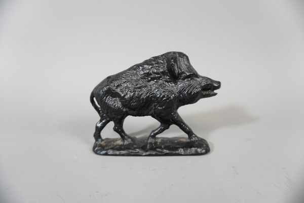 Sanglier en fonte patinée. Hauteur : 9,5 cm.