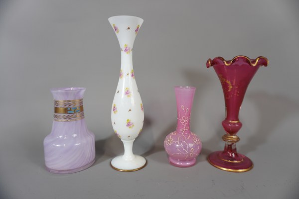 4 Vases colorés dont 1 en opaline, 1 émaillé et..