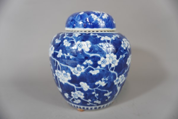 Pot couvert en porcelaine bleu et blanc à décor floral...