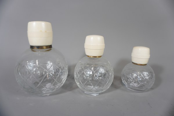 Ensemble de 3 flacons à parfum. Accidents aux bouchons intérieur...