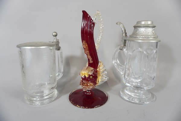 Aiguière en verre de Murano de forme poisson. Hauteur: 24cm,..