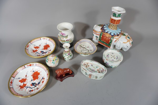 Lot de porcelaine asiatique dont 2 petits vases, 3 coupelles,..