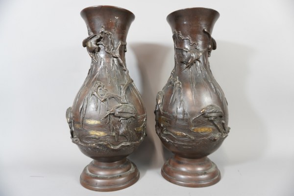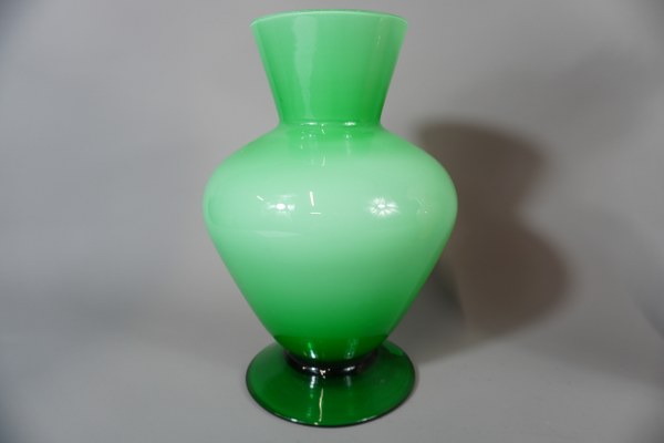 2 Vases opaline rose et vert. Hauteur: 30cm.