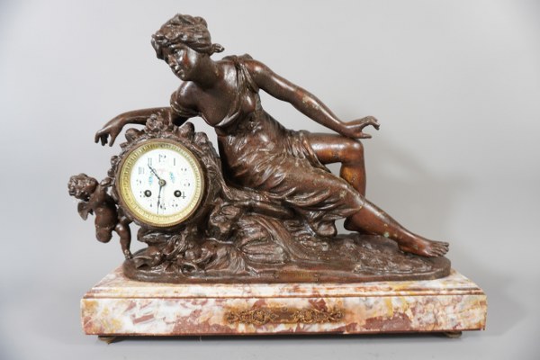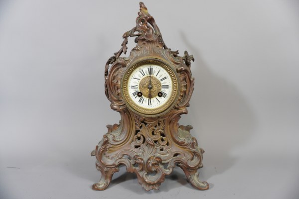 Cartel en bronze rocaille. 39x25cm. Accidents, verre cadran absent. Fonctionnement..