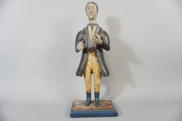 Sujet en bois figurant un gentilhomme à moustache, polychrome. Epoque..