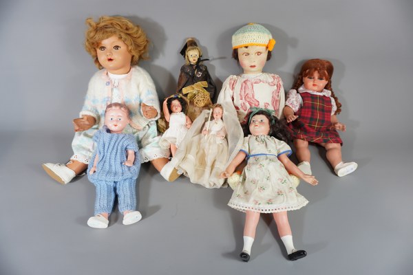 Lot de poupées en cellulose dont 1 Gégé aux yeux..