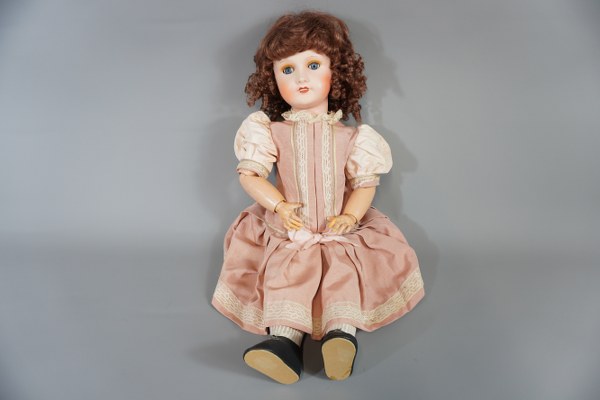 Poupée marque Paris, tête en carton peint aux yeux dormeurs,..