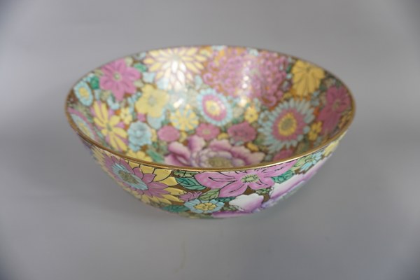 Saladier en porcelaine à décor floral. Hauteur: 14,5cm, diamètre: 31cm.
