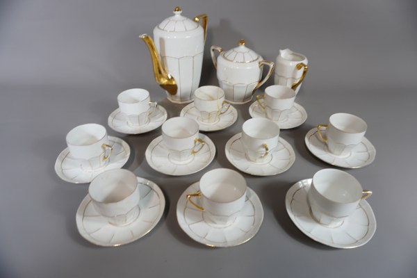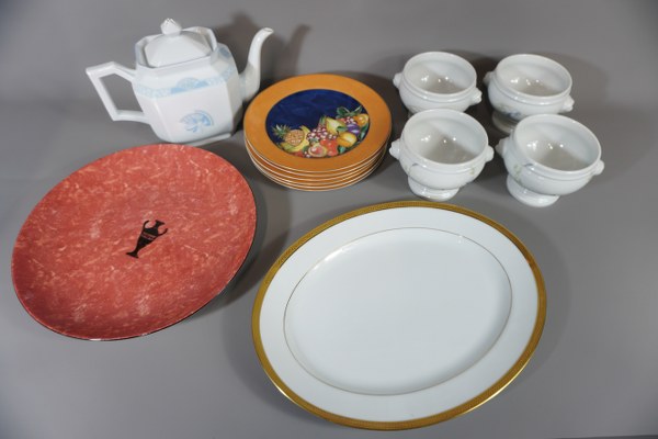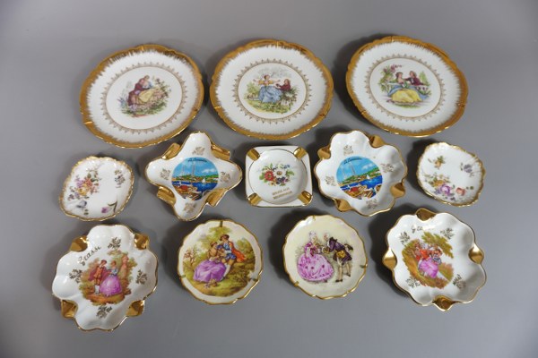Lot de coupelles et assiettes en porcelaine blanc et or.