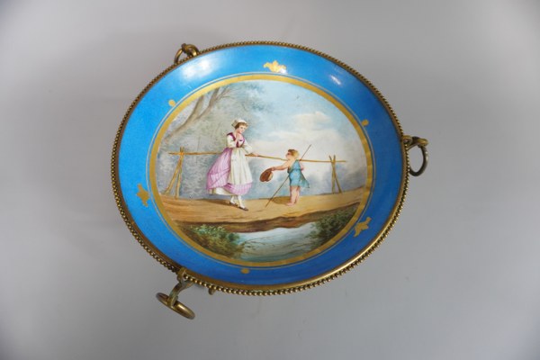 Assiette creuse monté en coupe avec monture tripode en bronze...
