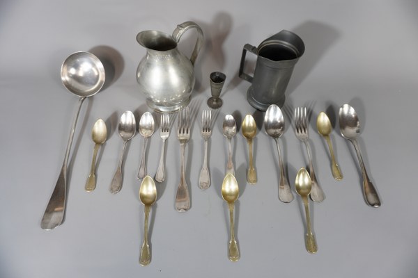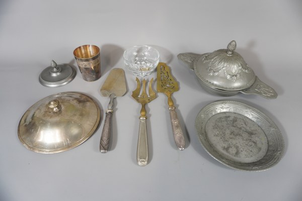 Lot de métal argenté et étains dont timbale, écuelle....