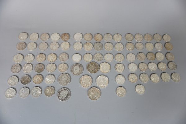 Lot de pièces en argent dont : - 5 francs..
