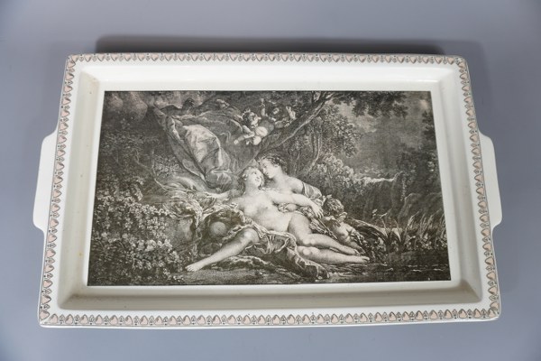 Plat rectangulaire Sarreguemines Jupiter et Calisto sujet Boucher. 47x28cm