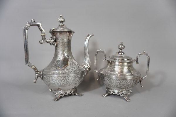 Élément de service à thé en métal argenté comprenant sucrier..