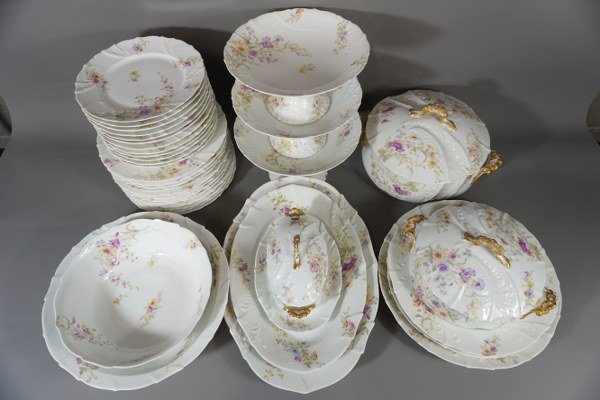 Partie de service de vaisselles MTR en porcelaine à décor..