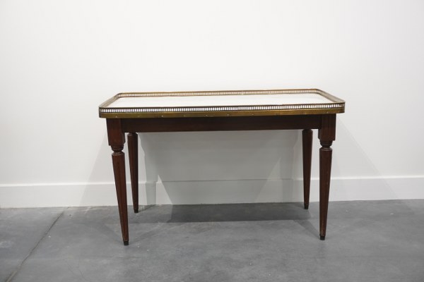 Table basse dessus de marbre blanc avec galerie en laiton...
