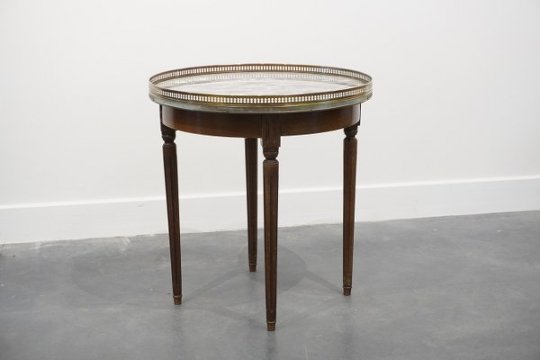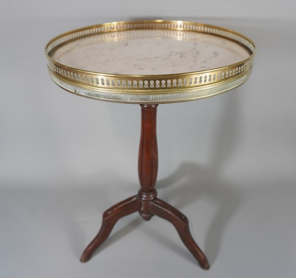 Petit guéridon dessus de marbre avec galerie en laiton. Hauteur:..