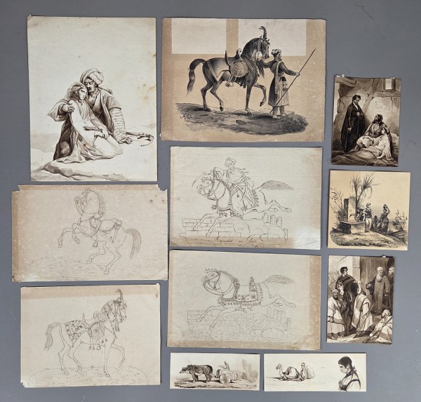 Lot de dessins à thème orientaliste. Epoque XIXème siècle.