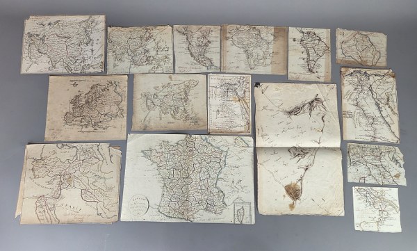 Lot de cartes dessinées et aquarellées. Epoque XIXème siècle.