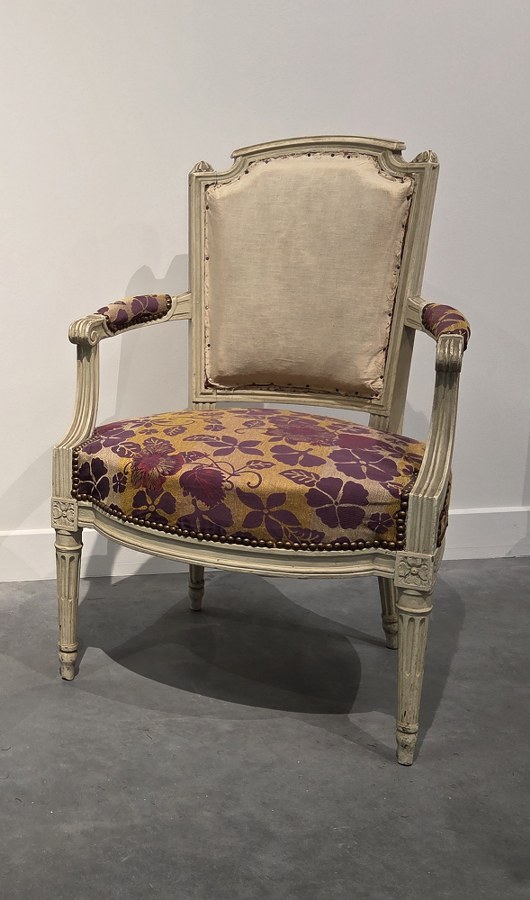 Fauteuil Louis XVI à dossier en chapeau de gendarme. 88..