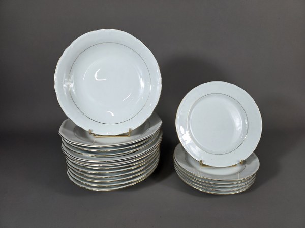 Service d'assiettes en porcelaine de Limoges, blanc et liseré doré..
